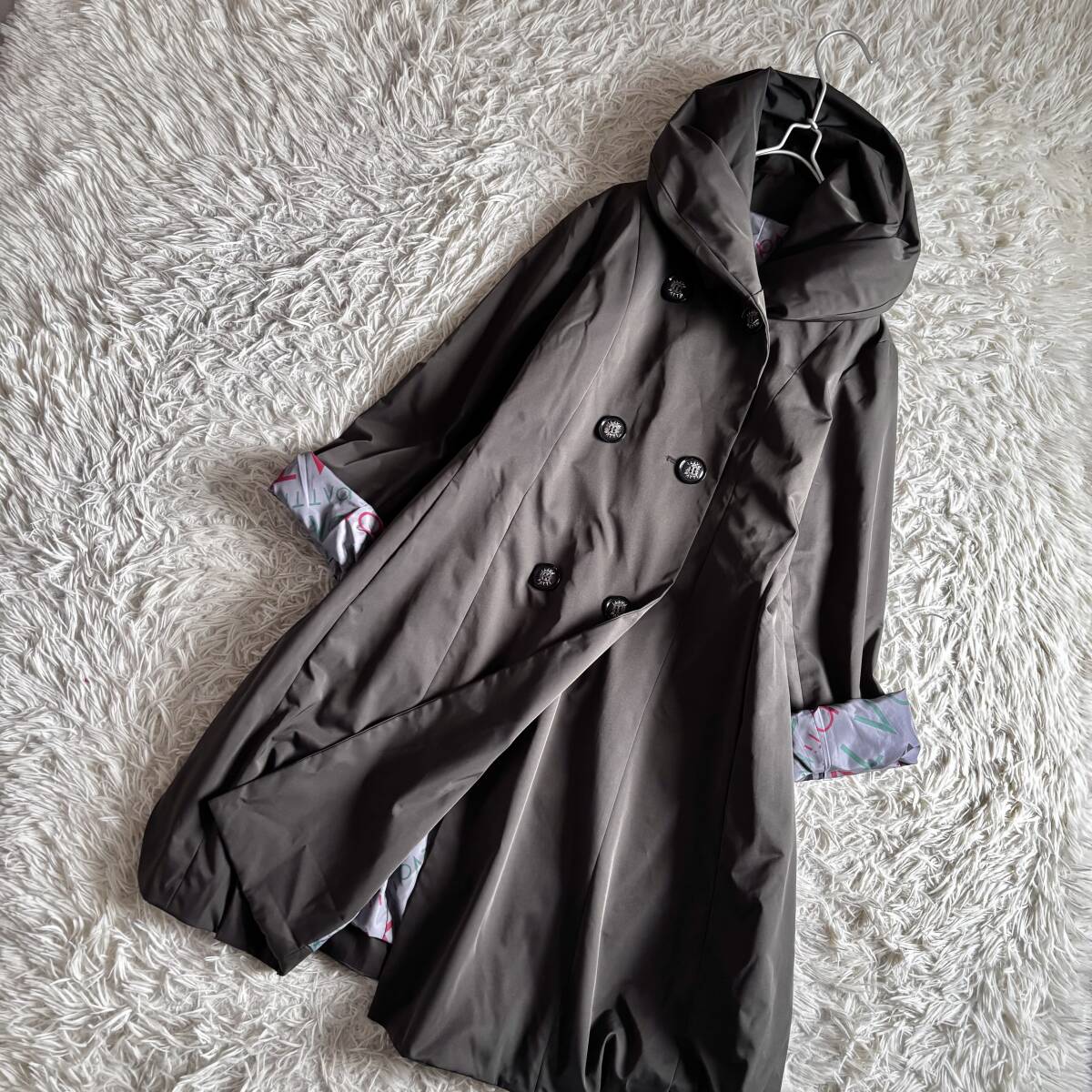 > ⑤ 42900円 極美品 パトリシアグッチ PATTI PATTI パティパティ ダブル へちまカラー バルーンシルエット コート 大きいサイズ フリー
