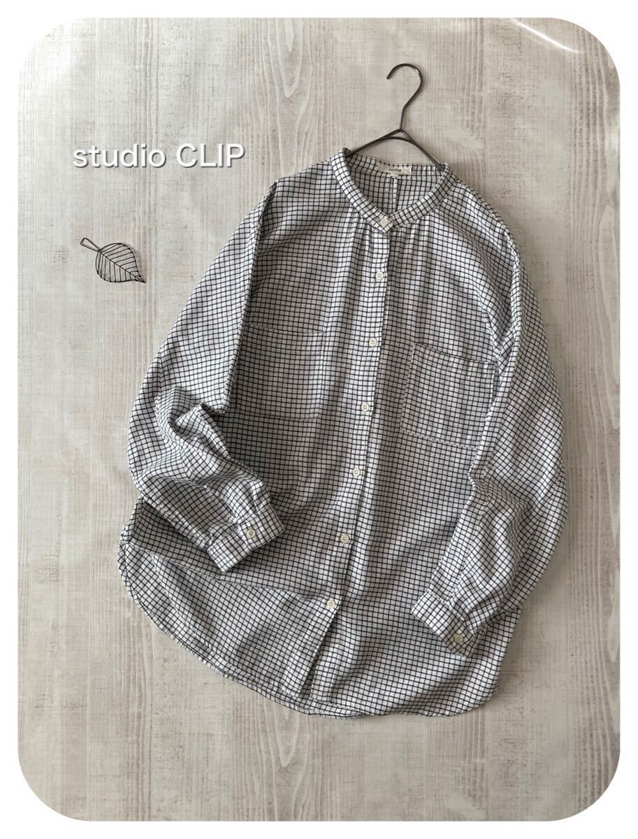 > *studio CLIP*スタジオクリップ*バンドカラー ゆったりネルチェックシャツ ブラウス*(cn)