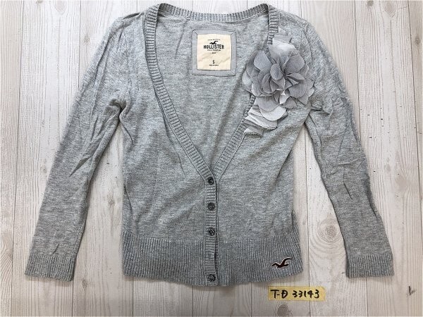 > Hollister ホリスター レディース コサージュ付き ニットカーディガン S 杢グレー