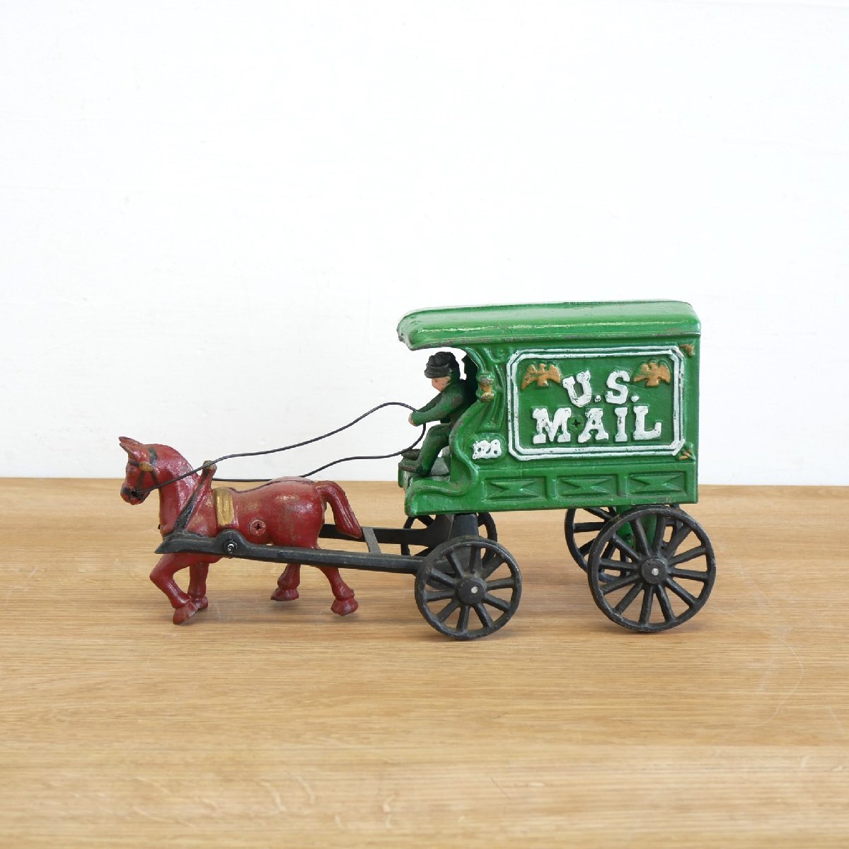 - ヴィンテージ キャストアイロン 馬車 U.S. MAIL / アメリカ 鋳鉄製 Cast Iron 郵便配達 運搬車 置物 おもちゃ #702-30-145-104