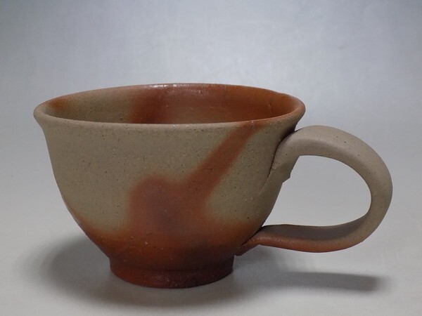 - ★ck02★備前焼 作者不詳(在銘) 緋襷コーヒーカップ★