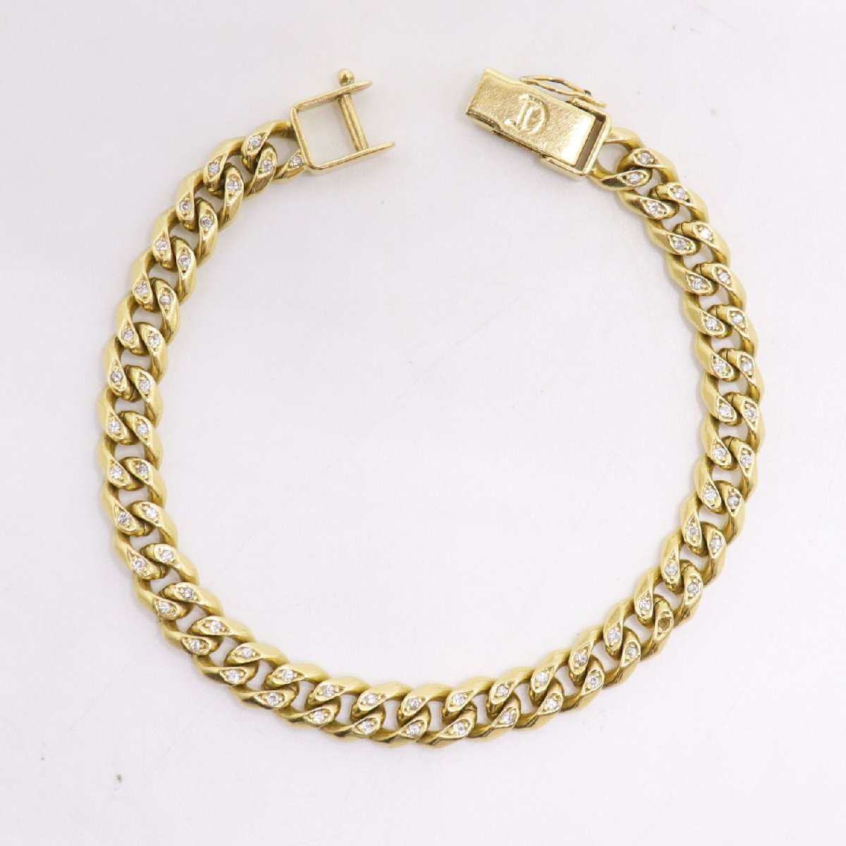 - K18 ダイヤモンド付 喜平 6面 シングル 金 ブレスレット ダイヤ 0.65ct 腕回り内周約17.5cm 約30g 実重量約27.8g 中古 美品 送料無料!!