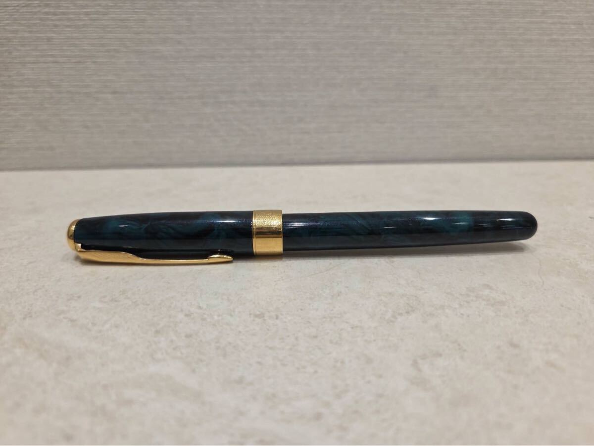 > M9912【綺麗品】 PARKER パーカー SONNET 万年筆 ペン先 18K-750 グリーン ゴールド マーブル 筆記未確認