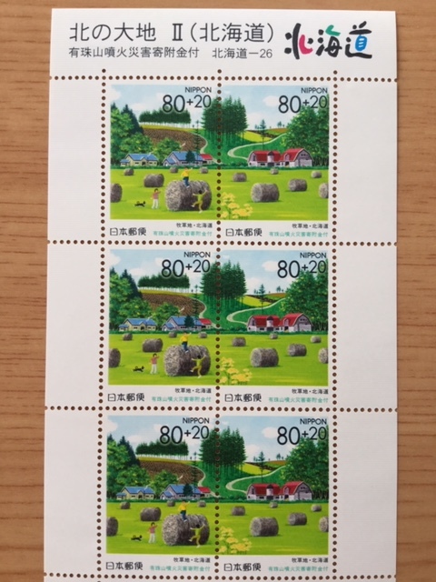 - ふるさと切手 北の大地 Ⅱ 有珠山噴火災害への寄付金付き 北海道 1シート(10面) 切手 未使用 2000年