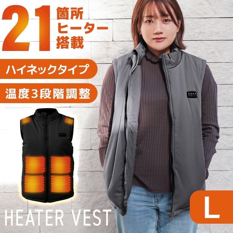 > 【フードなし/グレーL】電熱ベスト ヒーターベスト バッテリー対応 3段階温度調整 軽量 洗える 撥水 作業着 レディース メンズ 兼用