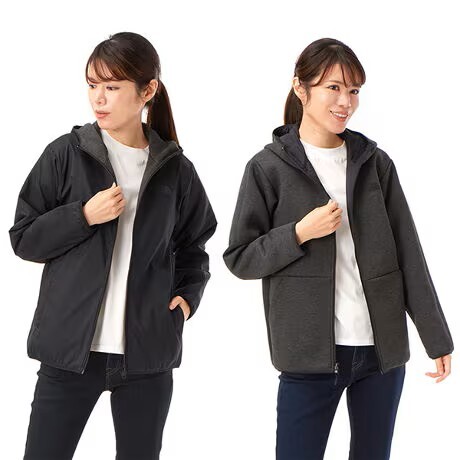 - 美品 ノースフェイス レディース リバーシブル テックエアフーディ パーカー M ブラック×ミックスチャコール ストレッチ 防風 静電ケア