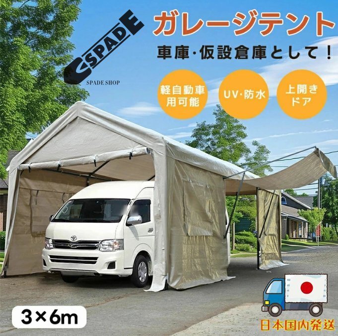- 【国内発送】テント 車庫テント ガレージテント 3×6m UV防水 ガレージテント カーポート 軽自動車用 大型 車 駐車 スチール製 頑丈