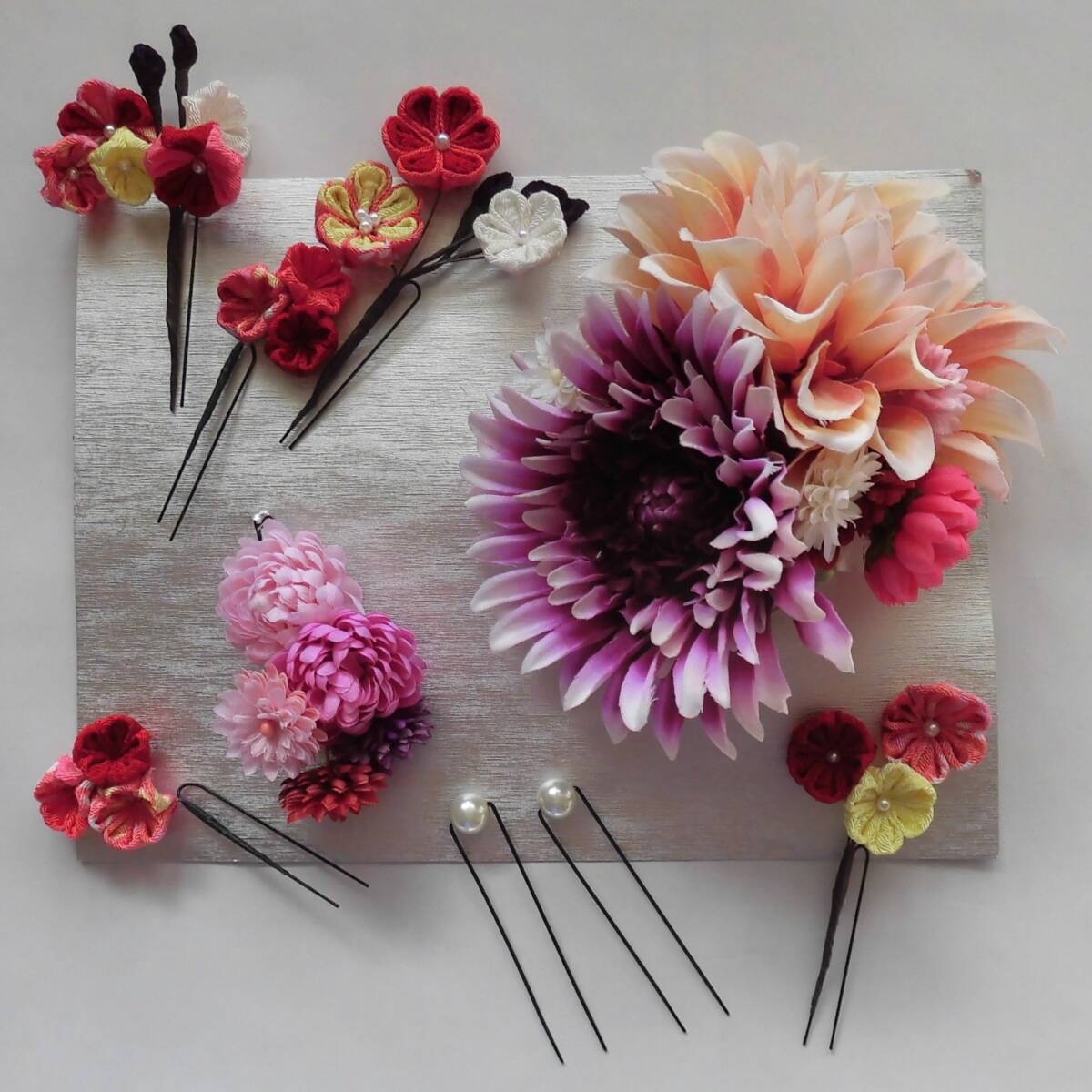 - 【即決 匿名配送 送料無料】中古品 和装髪飾りセット 造花 アートフラワー つまみ細工 パールピン 成人式 袴 振袖 卒業式 結婚式