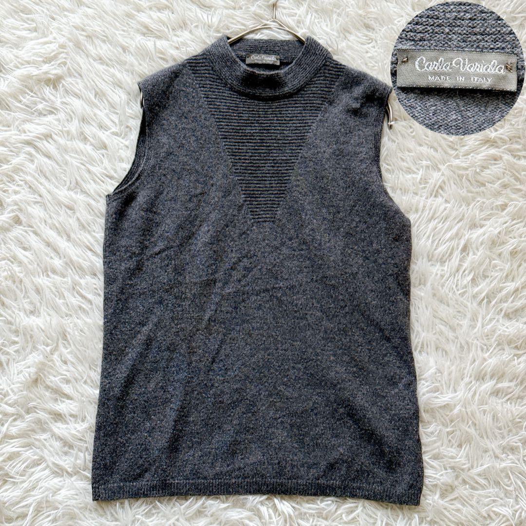 > Carla VariaIa カーラ ヴァリアーラ イタリア製 カシミヤシルク ニットベスト ハイネック ノースリーブ ベスト グレー トップス シンプル