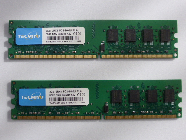 - PC2 6400U (DDR2 800) 2GB × 2 枚 合計 4GB 作動品