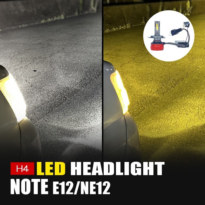 - ノート NE E12 LED ヘッドライト H4 ロービーム 3000K 8000K カメレオン 色温度調整 アプリ 連動 高輝度 イエロー ホワイト LEDヘッドライ