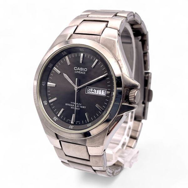 > 1円 ■ CASIO カシオ LINEAGE リニエージ LIN-171J メンズ デイデイト チタニウム 黒文字盤 3針 シルバー ベルト N5378-80-85