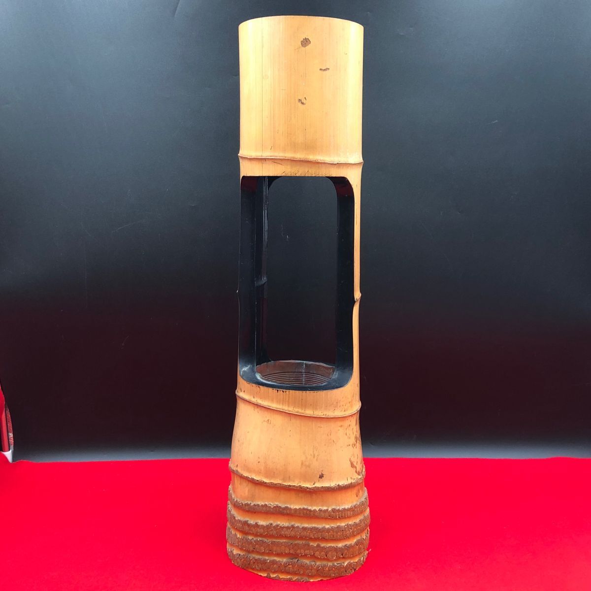 - 竹二重切 根付花入 銅板内張り 高さ61cm 旧家整理品 【RA1045S#120】
