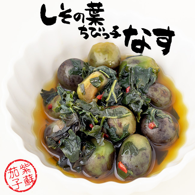 - しその葉ちびっ子なす 260g【小茄子とシソのピリ辛漬】小さなナスを紫蘇の葉でさっぱりと仕上げた漬物【紫蘇茄子】【メール便対応】