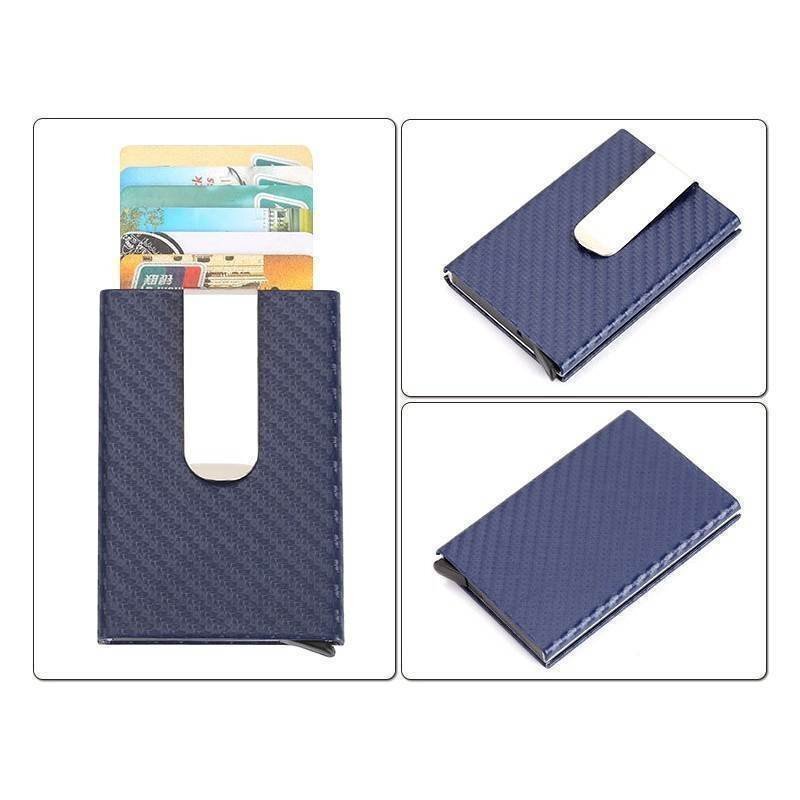 - 送料無料! カードケース 003 [カーボン調紺] スキミング防止 RFID マネークリップ メンズ レディース 薄型 スライド式 アルミ製 磁気防止
