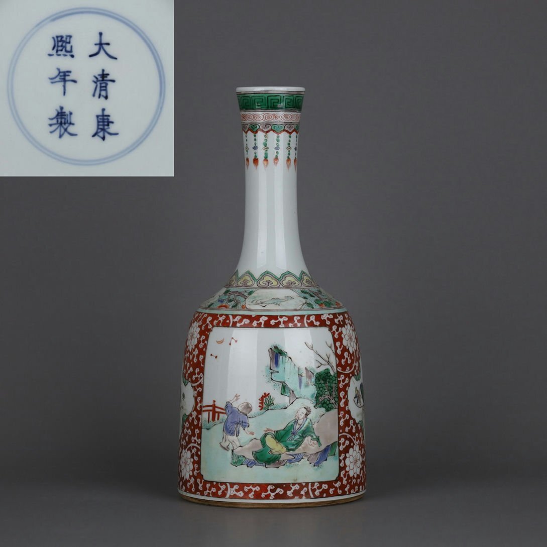 - ▼渡鶴羽▼K6333清康熙 五彩開光人物図搖鈴尊・古陶磁器 ・珍品旧蔵・古賞物・時代物
