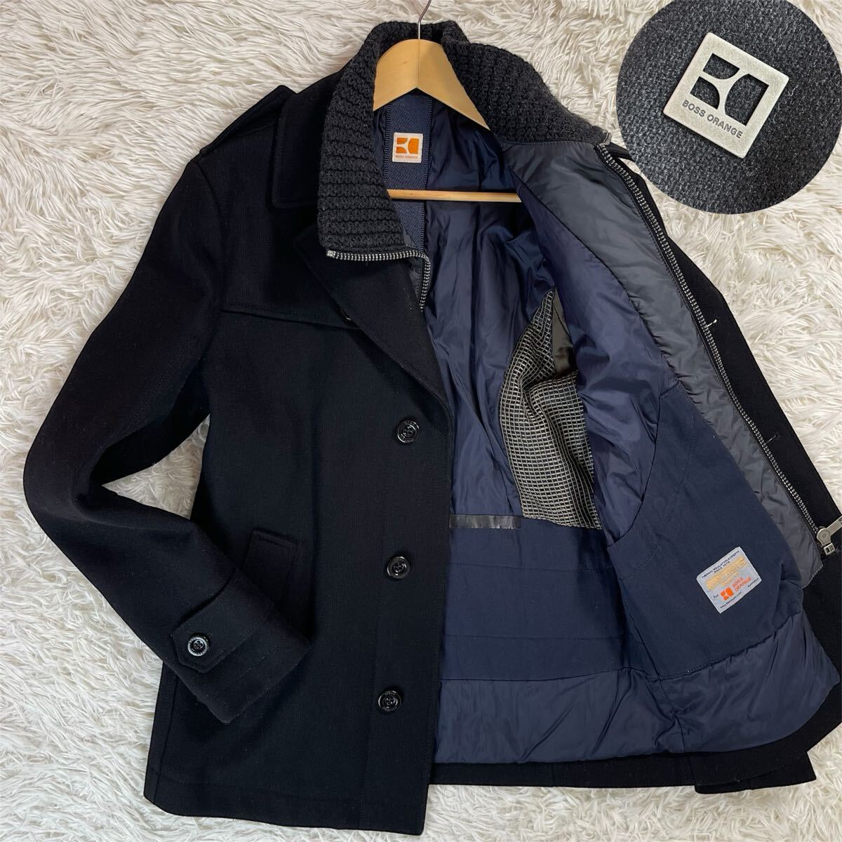 - 極美品/XLサイズ●HUGO BOSS ヒューゴボス ピーコート 2層 レイヤード 襟リブニット ジャケット Thermore 中綿 極暖 ビジネス 黒 ORANGE