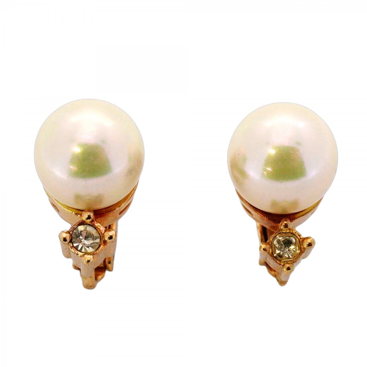 > ★最終価格【5jib0813】クリスチャンディオール イヤリング GPメッキ フェイクパール ラインストーン ゴールド【中古】レディース