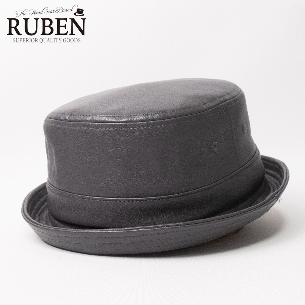 - 新品 RUBEN エコレザー ポークパイハット フリーサイズ グレー