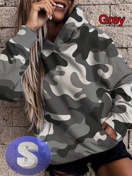 - フード付き 迷彩 カモフラパーカー グレー S トレーナー アウター 防寒 n712