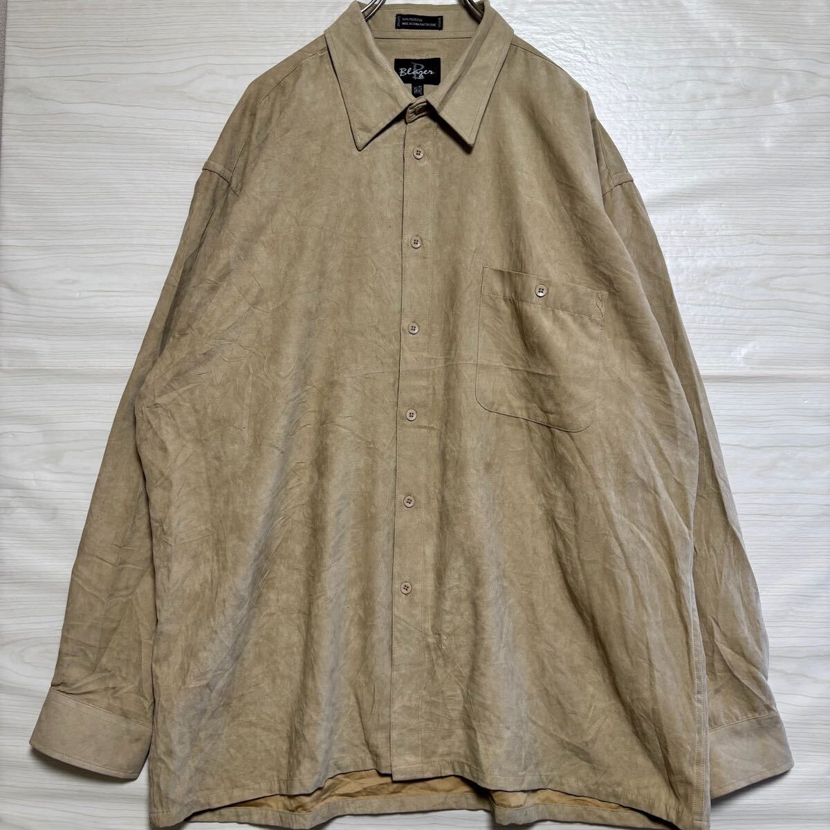 - VINTAGE ヴィンテージ 長袖シャツ レギュラーカラー 胸ポケット サイズXL ベージュ ポリエステル メンズ トップス(39)