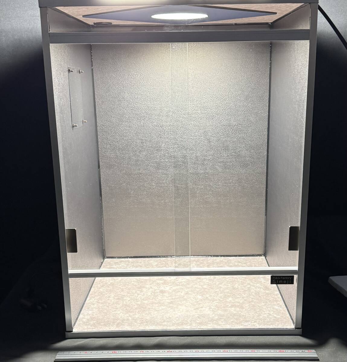 > 【K&G Factory】オリジナルケージ 1点もの 高さ60cm 幅奥行45cm 光る空調ファン付 観葉植物 爬虫類 テラリウム