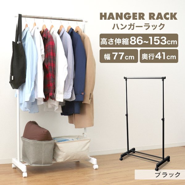 - 新品 ハンガーラック 耐荷重20kg 高さ86~153cm キャスター付き コートハンガー パイプハンガー 頑丈 おしゃれ 収納ラック 衣類収納 黒