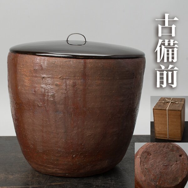 > 【千h1105】古備前 緋襷 水指 桃山時代 木箱(花押有) 備前 茶道具