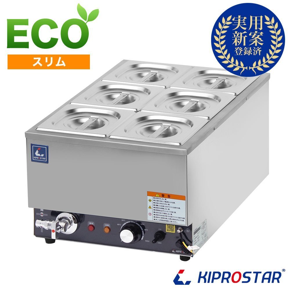 - 【新品】業務用 電気フードウォーマー スリム ホテルパン1/6 ノーマル蓋 卓上ウォーマー 食材保温 湯煎器 バイキング 湯煎式