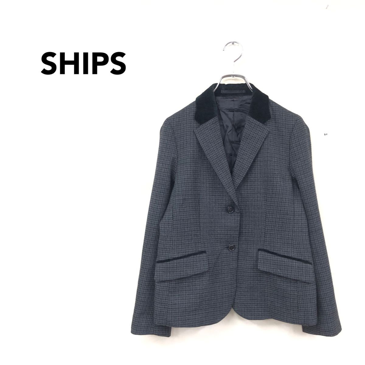 > 2O3029-K◆日本製 SHIPS シップス テーラードジャケット◆size38 チャコールグレー 千鳥柄 総裏 ベロア切り替え キレイめカジュアル
