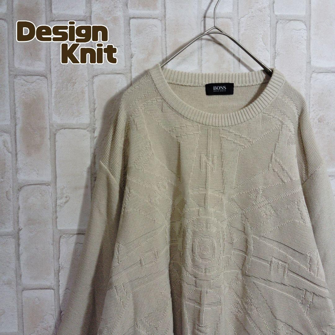 - ヒューゴボス ニット セーター ベージュ 幾何学模様