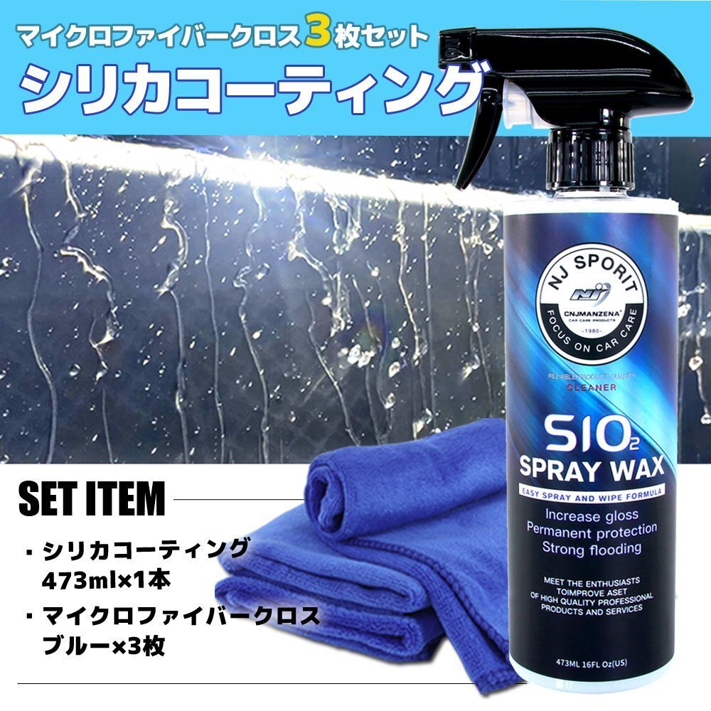 洗車用品 シリカ コーティング マイクロファイバークロスセット 3枚 ブルー 撥水 艶 光沢 耐久 硬化 車 バイク ガラスコーティング