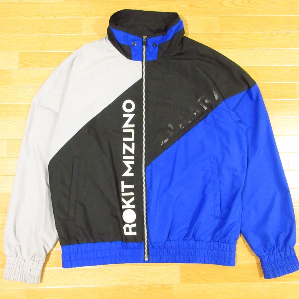 > ◎使用少々!24karats x MIZUNO x ROKIT 24カラッツ ミズノ ロキット コラボ!ウィンドブレーカー ナイロンジャケット メンズ 青 M◆AA5083