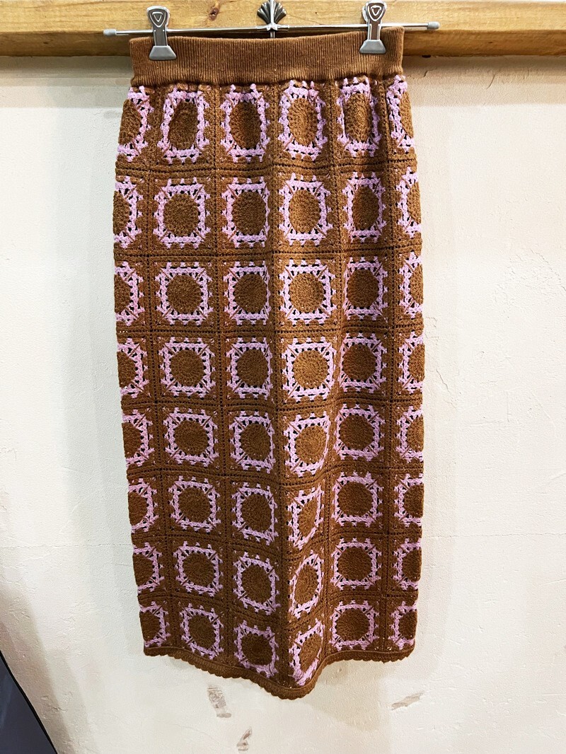 - Y50★LOUNIE/ルーニィ カギ編みパッチワークニットスカート レディース ブラウン×ピンク 36(Sサイズ) スカート カジュアル USED ★
