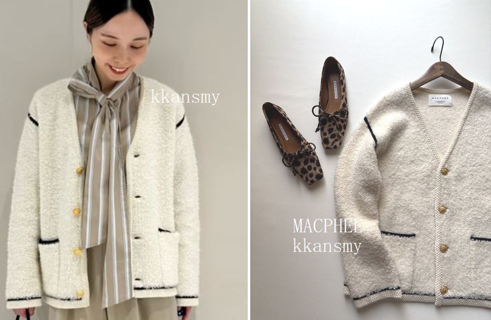 - 2023MACPHEE マカフィー*ムートン Vネックカーディガン