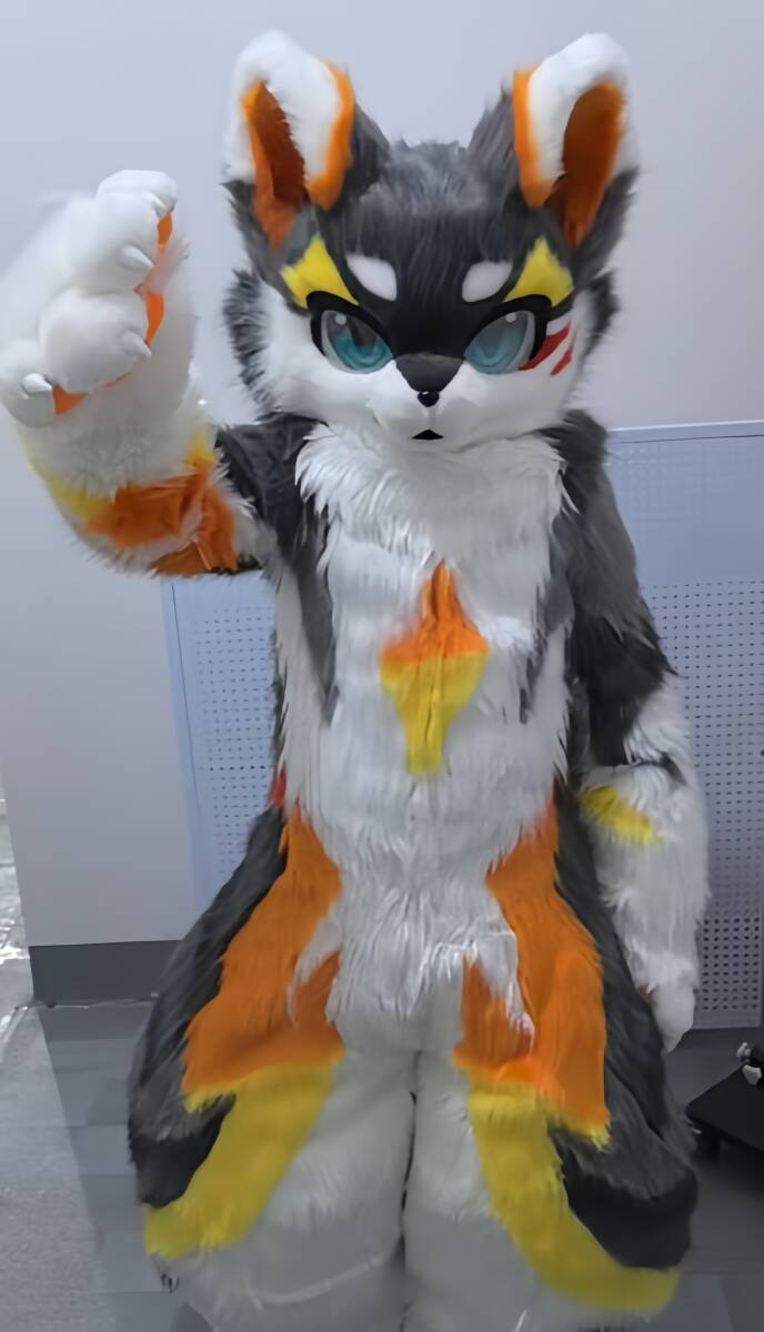 > ★着ぐるみ ケモノ体 フルスーツ セット NO.52 灰色 オレンジ色 全頭ヘッド ファースーツ ぬいぐるみ コスプレ コスチューム 一点物