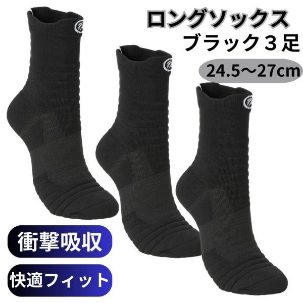 > スポーツソックス 3足セット メンズ 靴下 レディース 吸汗速乾 抗菌防臭 滑り止め 厚手 ランニング トレーニング ゴルフ 黒 ブラック 新品