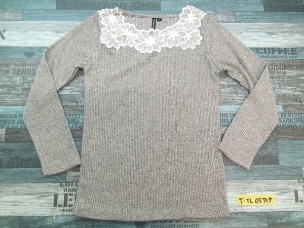- HK WORKS LONDON レディース フラワーレース ニットソー M 杢グレー白