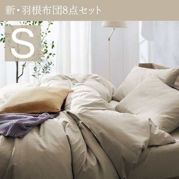 - 3年保証 新・羽根布団8点セット ベッドタイプ シングル モデレートグレージュ