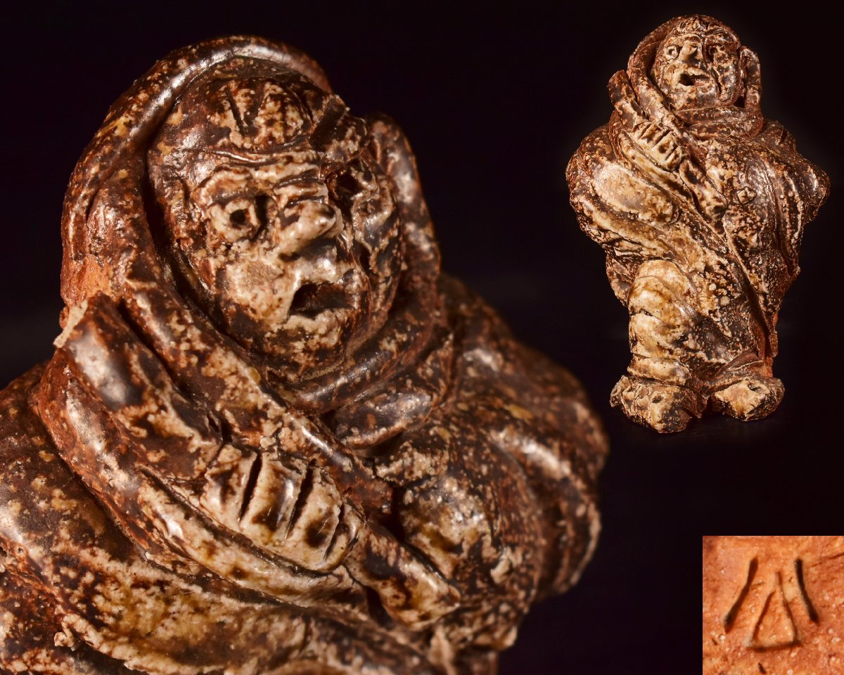 多少の汚れ・底縁一部にやや削げ・手に持っている棒先部分の欠け等が御座います。