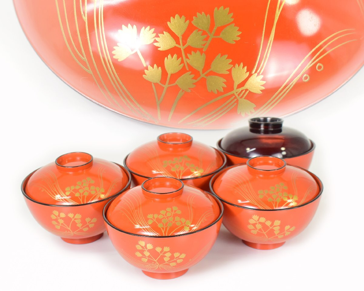 X908 【泉美】漆芸 蓋付吸物椀 煮物椀 5客 懐石道具拍卖