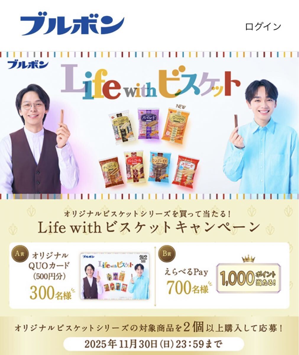 > レシート懸賞 ブルボン オリジナル QUOカード 500円分 えらべるPay 1000ポイント クオカード 五百円分 PayPay 等 千ポイント