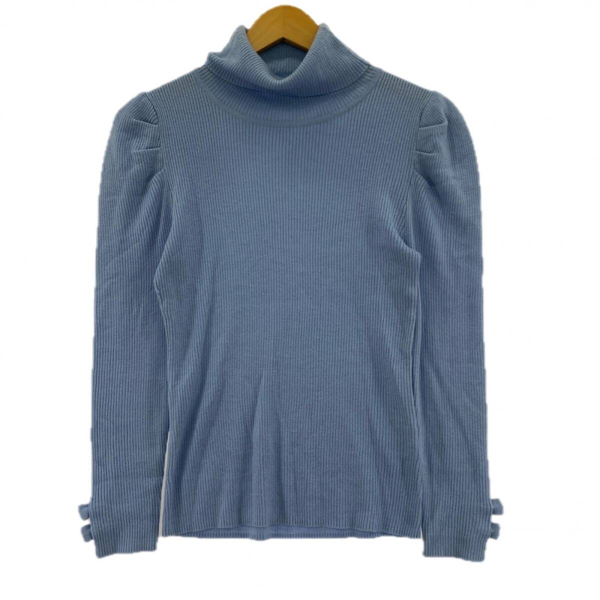 - GALLERY VISCONTI ギャラリービスコンティ galle ウール混 リボンスリーブ リブ ニット size2/サックス ゆうパケットOK