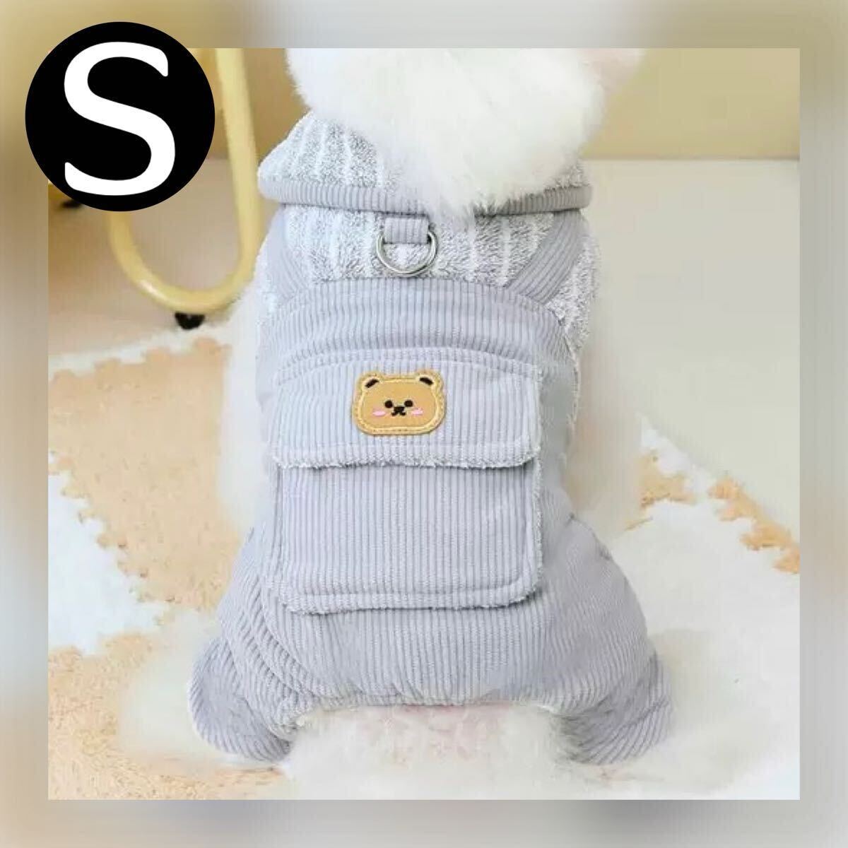 - S リードフック付き モコモコ カバーオール (グレー) 犬服 犬の服 小型犬 ペット服 ペット用品 ドッグウェア ロンパース 裏起毛