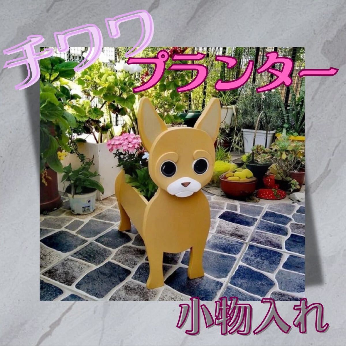 - チワワ プランター 小物入れ 木製 鉢植え アニマル 動物 可愛い