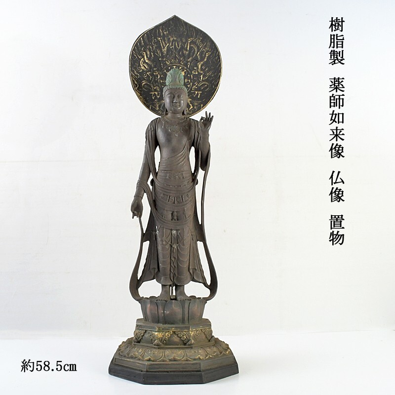 - 仏教美術 樹脂製 薬師如来像 仏像 置物 約58.5㎝ 古玩 VGSP