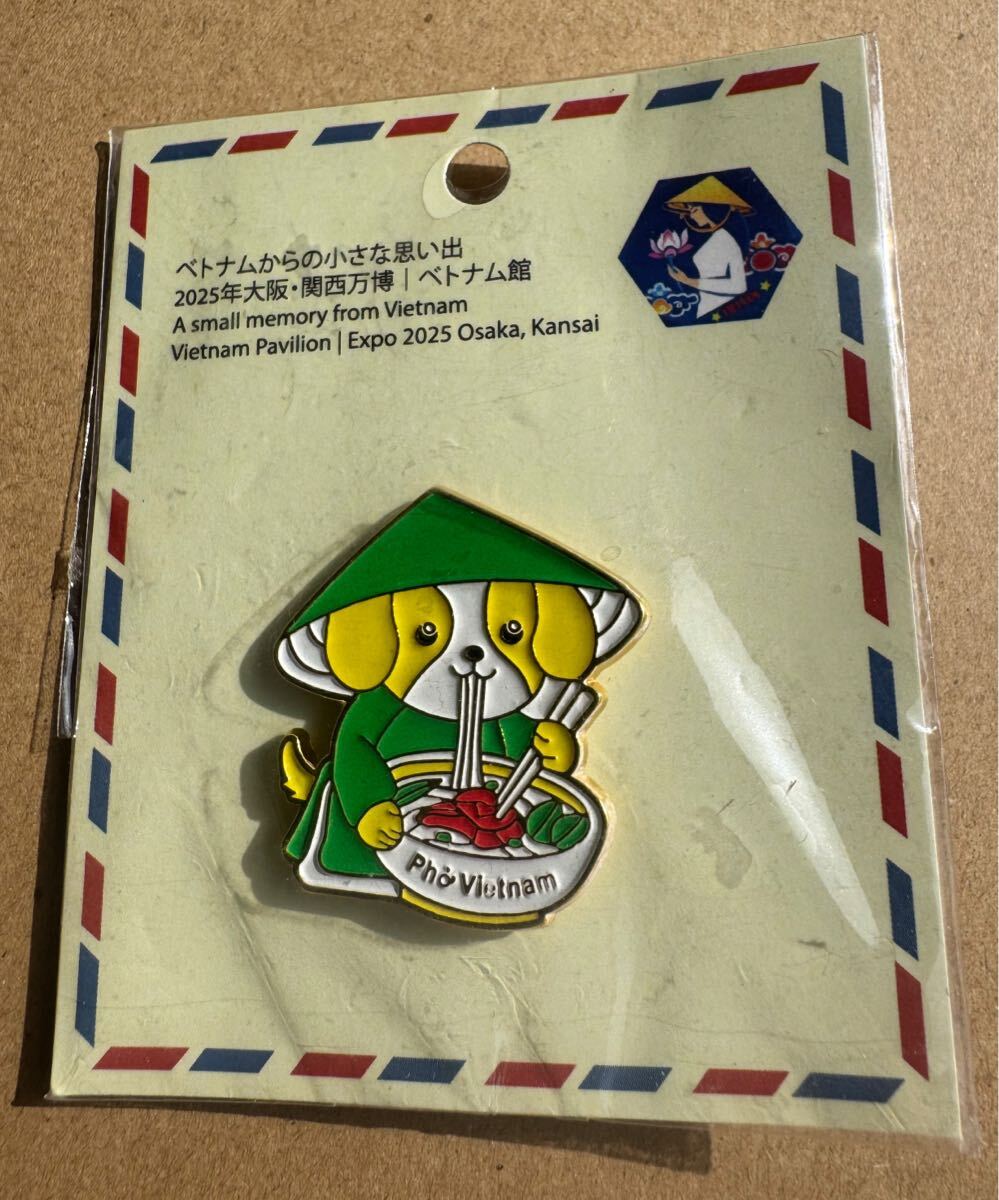 > 大阪・関西万博 Expo 2025 ベトナム館 フォーを食べる犬 アオザイ 民族衣装 イヌ ベトナム パビリオン ピンバッジ ピンズ