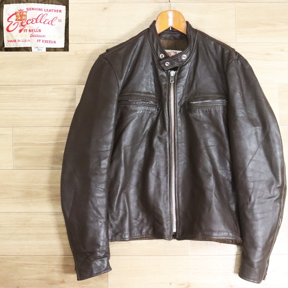 > X2R/Y5.7-5 70s ヴィンテージ USA製 Excelled シングルライダース 本革 レザージャケット 革ジャン 皮ジャン 40R アメリカ古着