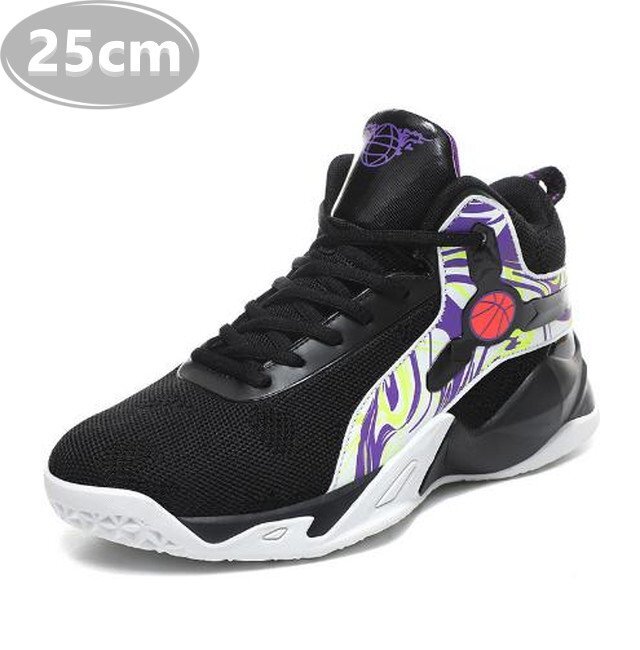 - メンズ スニーカー ブラック 25.0cm 靴 シューズ 防滑 バスケットシューズ 通勤 通学 旅行 【238】