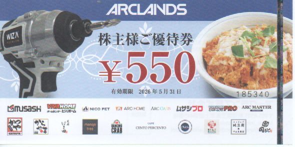 - アークランズ 株主優待券 11000円分 有効期限:2026年5月31日 普通郵便対応可